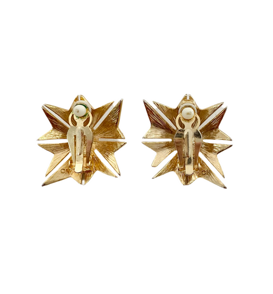 Gold Tone Enamel Star Earrings by Leslie Block