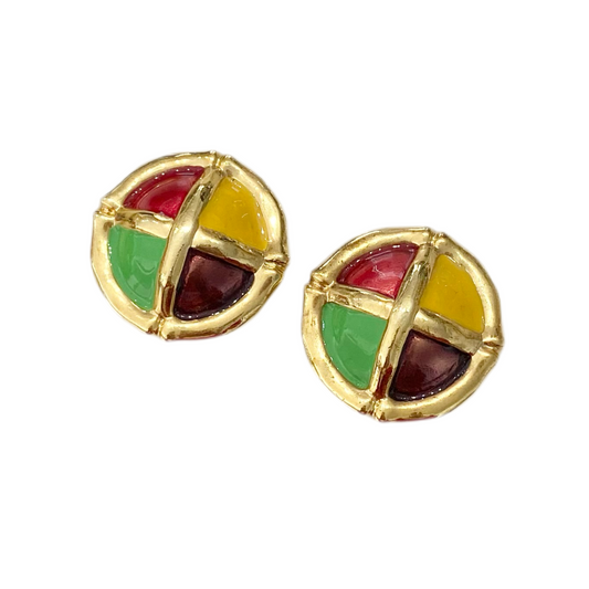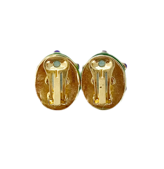 Gold Multi Colored Enamel Clip On Earrings