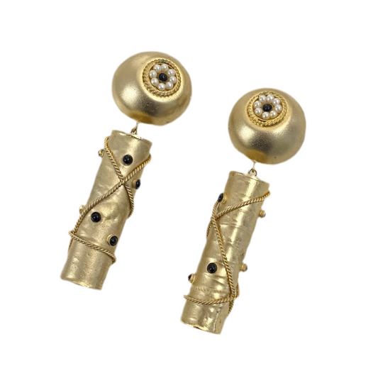 Gold Cylinder Drop Clip On Earrings