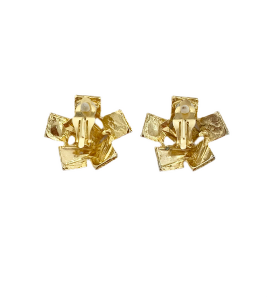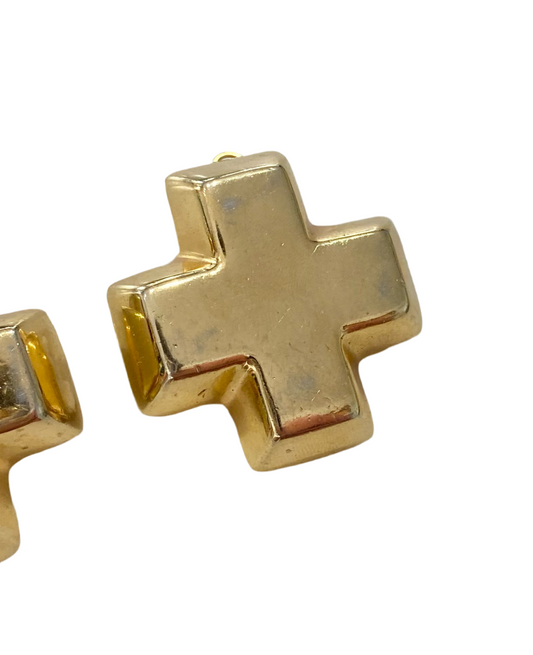 90s Gold Tone Chunky Cross Clip On Earrings