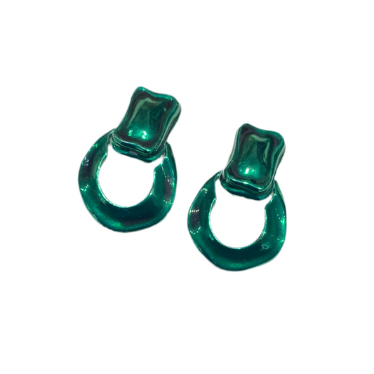 Green Liquid Metal Door Knocker Earrings