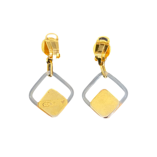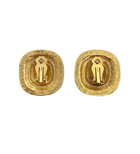 90s Gold Rhinestone Abstract Square Clip On Earrings
