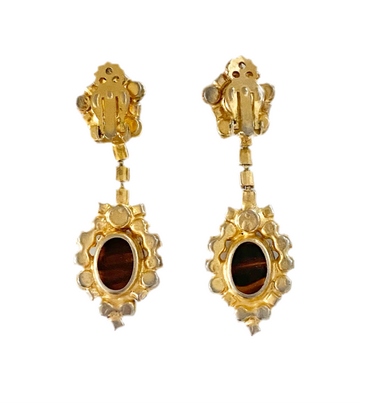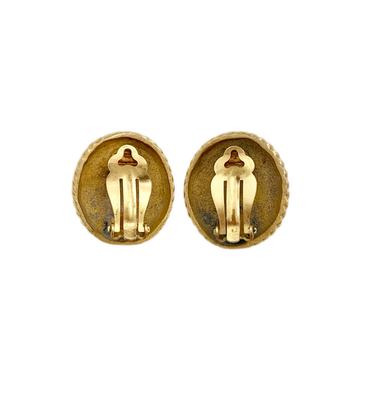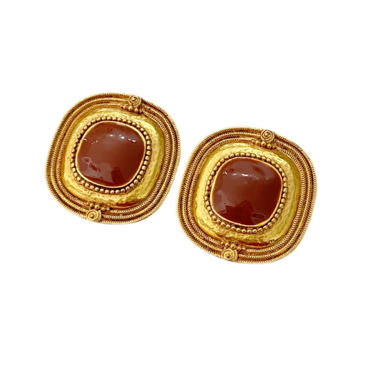 90s Gold Brown Enamel Byzantine Clip On Earrings