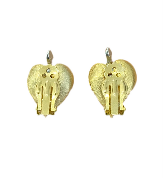 90s Gold Tone Heart Cluster Clip On Earrings
