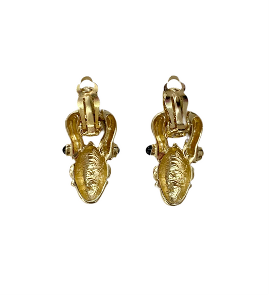 90s Gold Black Enamel Byzantine Clip On Earrings