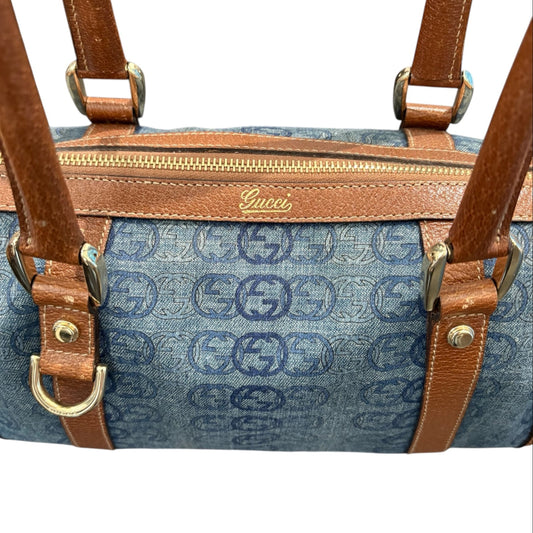 Gucci Boston Abbey Interlocking Logo Blue Denim Satchel